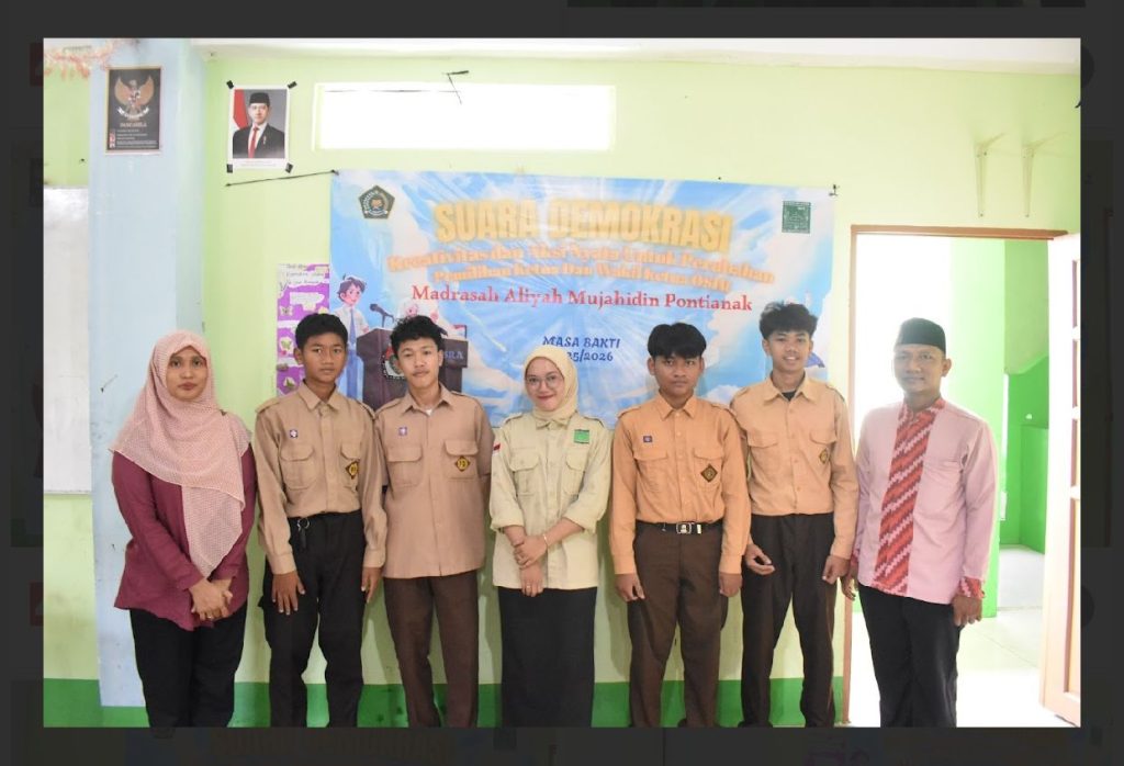 PONTIANAK-Muhammad Surya dan Ervan Maulana terpilih menjadi Ketua Organisasi Siswa Intra Madrasah (OSIM) Aliyah Mujahidin Masa Bakti 2025/2026. Pasangan Nomor Urut 3 itu terpilih berdasarkan Pemilihan Umum yang dilaksanakan Jumat, 27 September 2025 dengan raihan 30 suara pemilih.